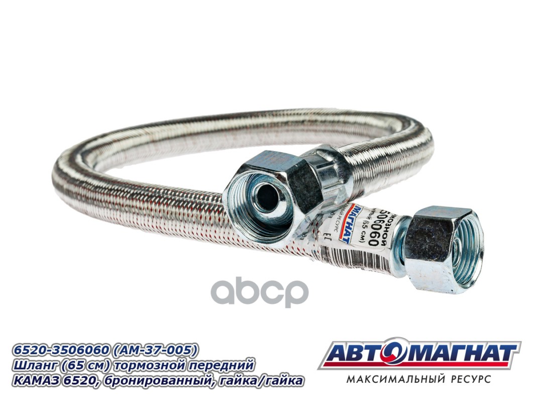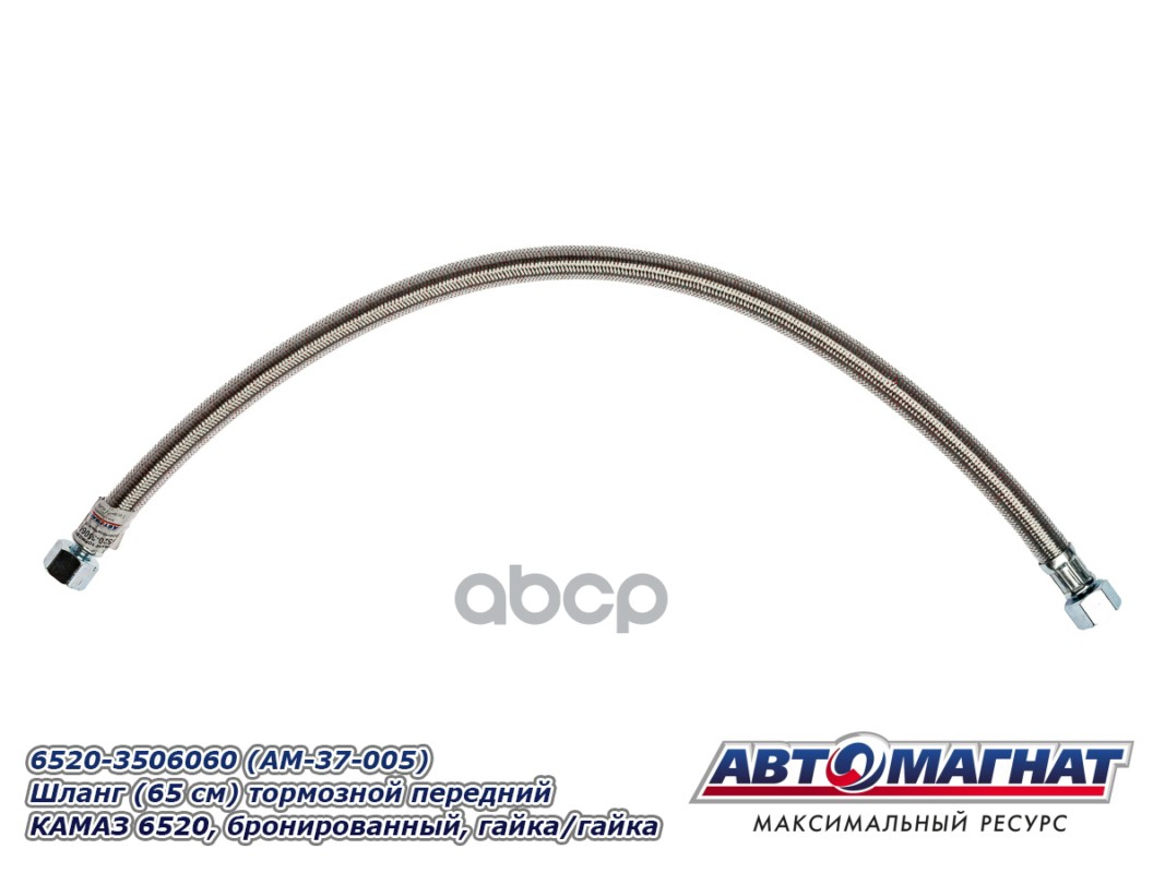 Бренд: АВТОМАГНАТ, артикул: AM37005, Шланг тормозной КАМАЗ-ЕВРО-2 передний в металлической оплетке гайка-гайка L 650мм. |