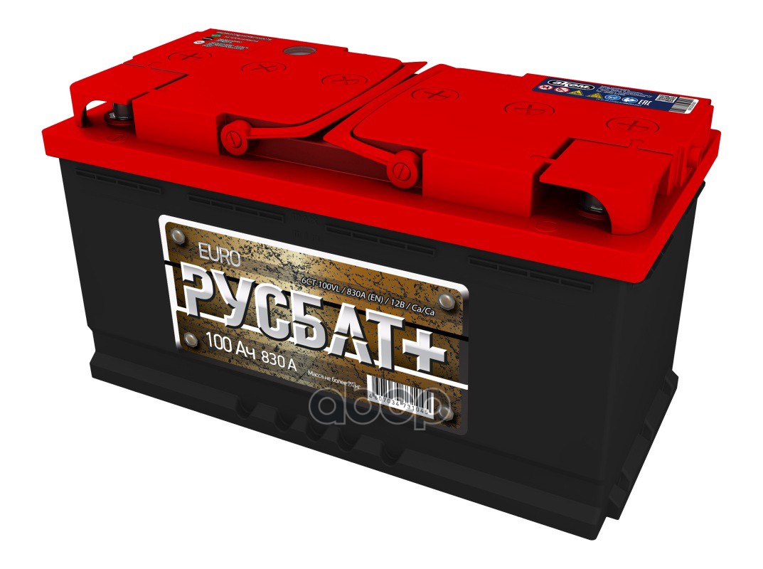 Аккумулятор Русбат+ [-+] о.п. 100 Ah (830А) L5 |353x175x190| ( нетоварныи вид)