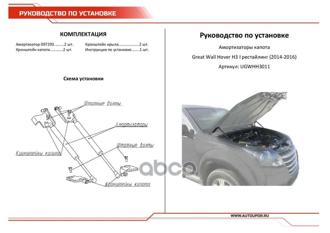 Купить запчасть UGWHH3011 упор капота2шт., крепеж в комплектеGreat Wall Hover H3 14> с доставкой в Эль-Монте.