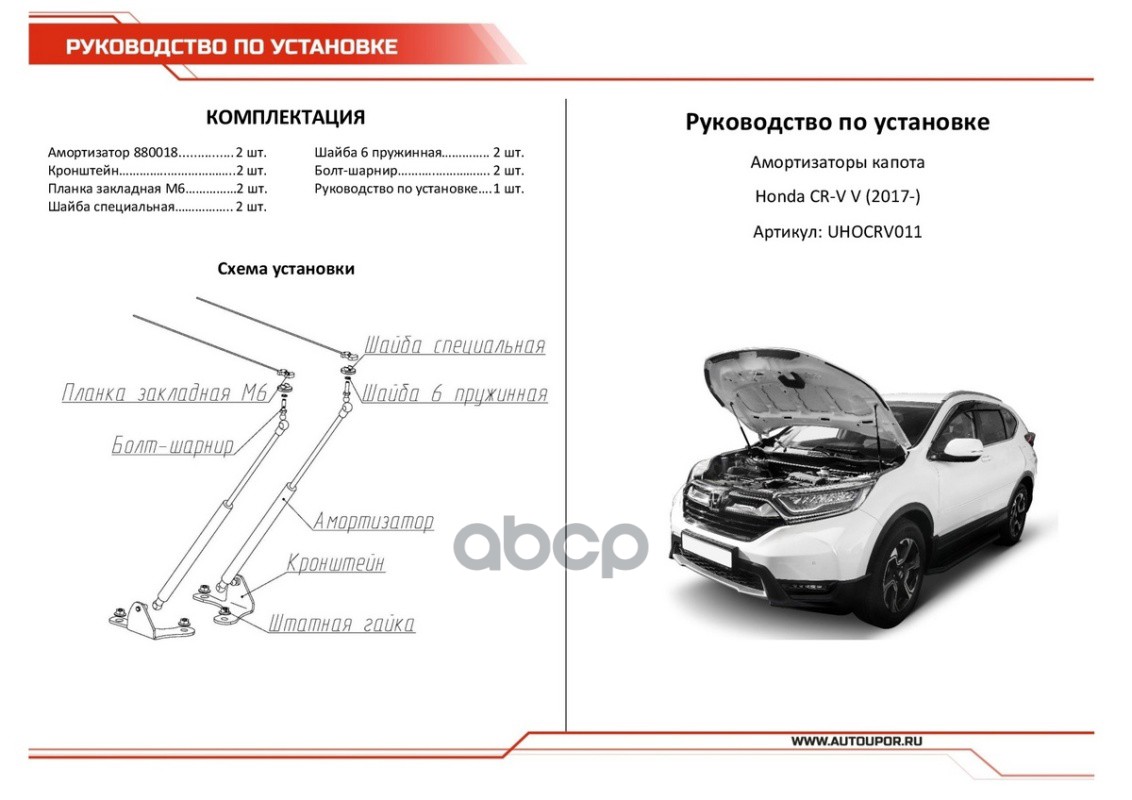Наименование: Амортизаторы капота (2 шт.) Honda CR-V 2017-2022