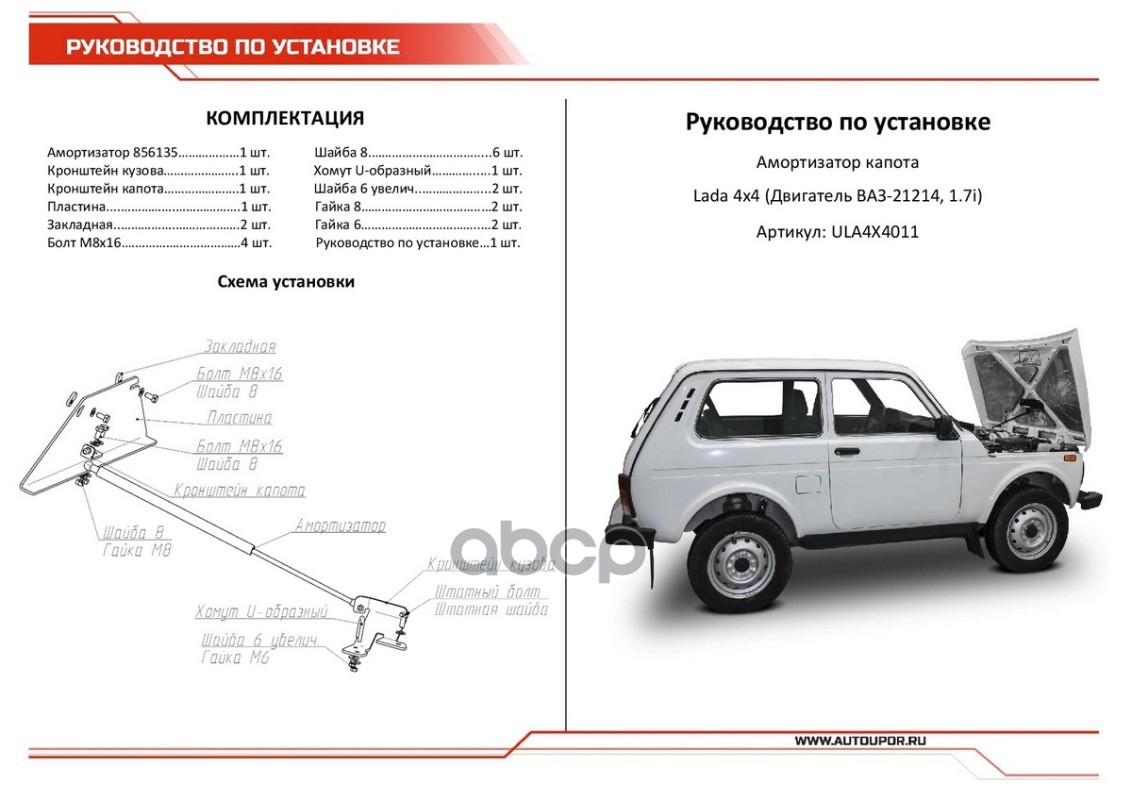 Купить запчасть ULA4X4011 Амортизатор капота (1 шт.) Lada 4x4 2006- (V - 1.7i) с доставкой в Эль-Монте.