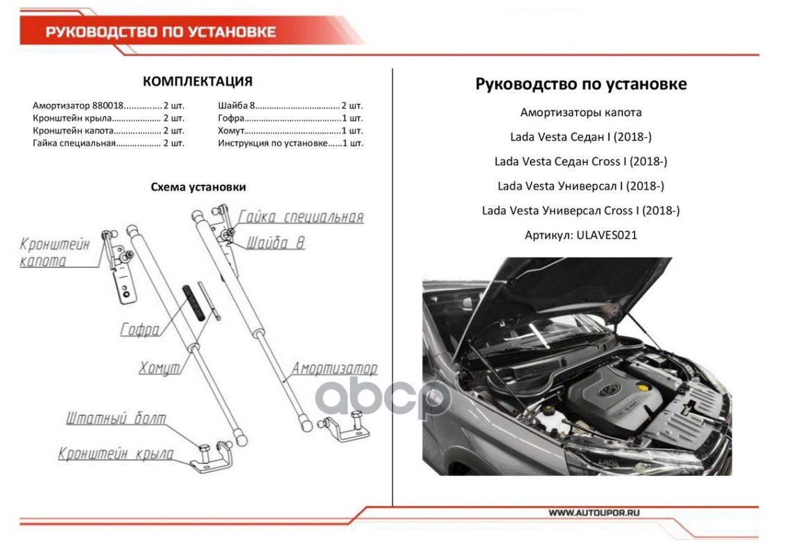 Купить запчасть ULAVES021 Амортизаторы капота (2 шт.) Lada Vesta седан/универсал/седан Cross/универсал Cro с доставкой в Эль-Монте.