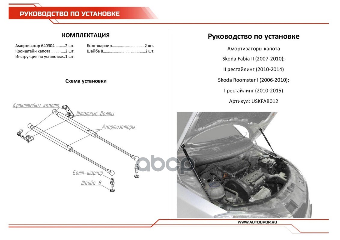 Купить запчасть USKFAB012 Амортизаторы капота (2 шт.) Skoda Fabia 2007-2014, Skoda Roomster 2006-2015 с доставкой в Эль-Монте.