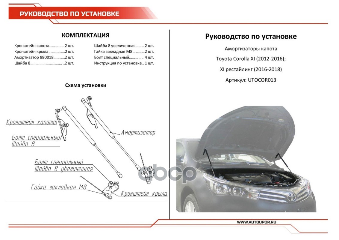 Купить запчасть UTOCOR013 Амортизаторы капота (2 шт.) Toyota Corolla (2012-2016 2016-2018) с доставкой в Эль-Монте.