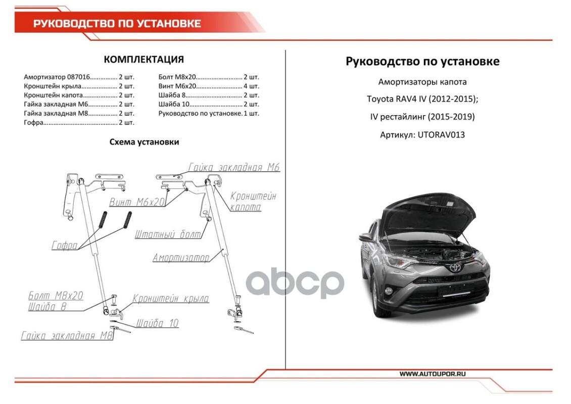 АвтоУпор UTORAV013 Бренд: Rival, артикул: UTORAV013, Амортизаторы капота TOYOTA RAV 4 13-> (2шт + крепеж).