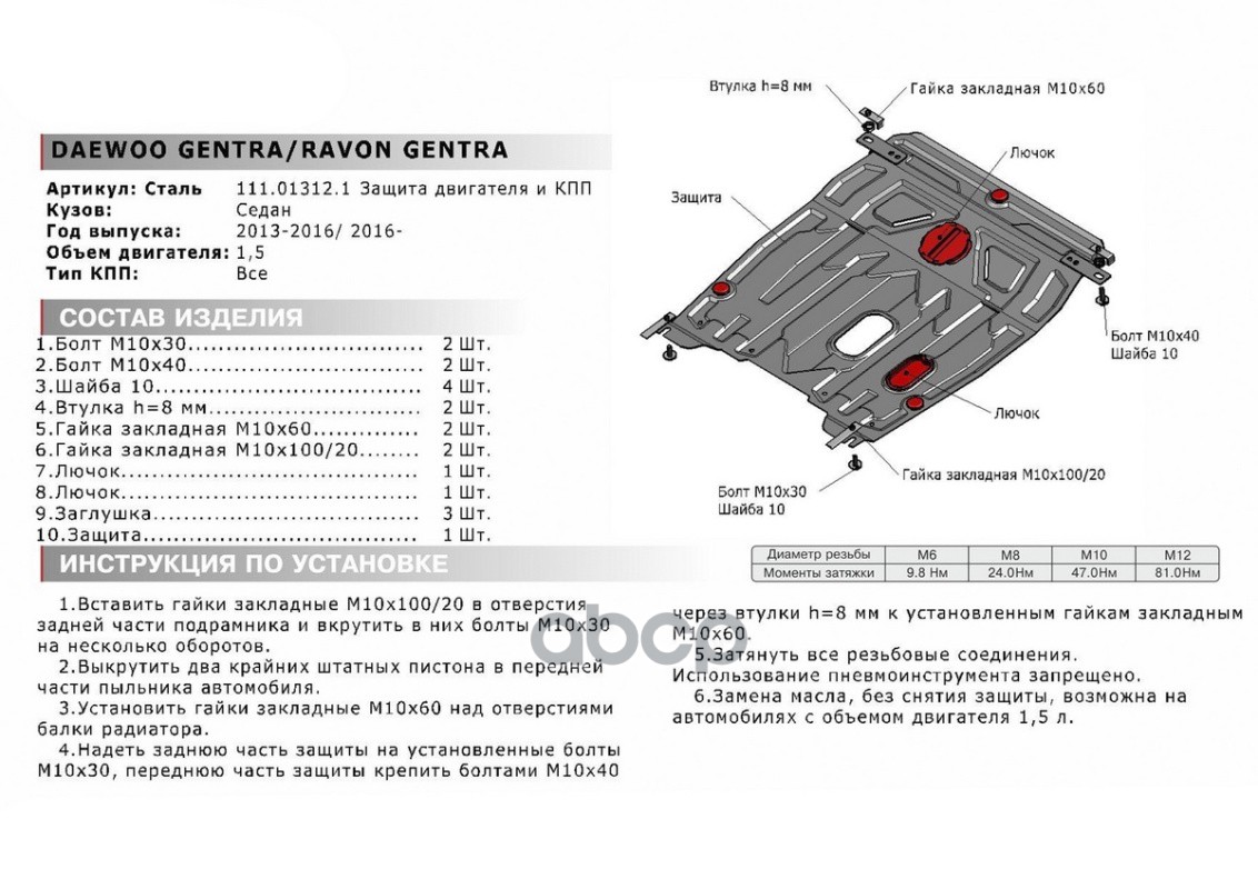 Наименование: Защита картера и КПП DAEWOO Gentra, RAVON Gentra 1.513->