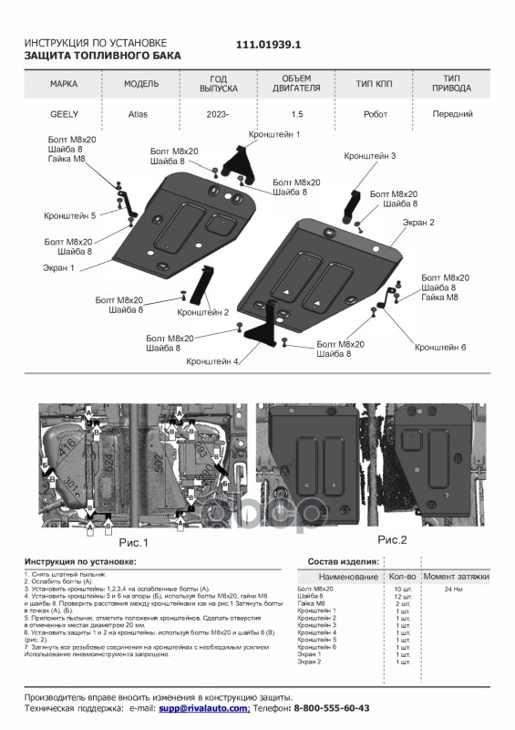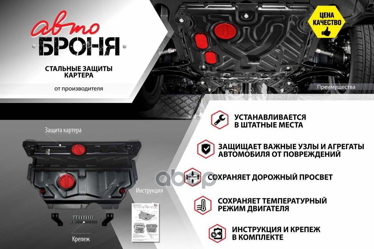 Наименование: Защита топливного бака (сталь 1,5 мм) + комплект крепежа для Geely Atlas 2024- (