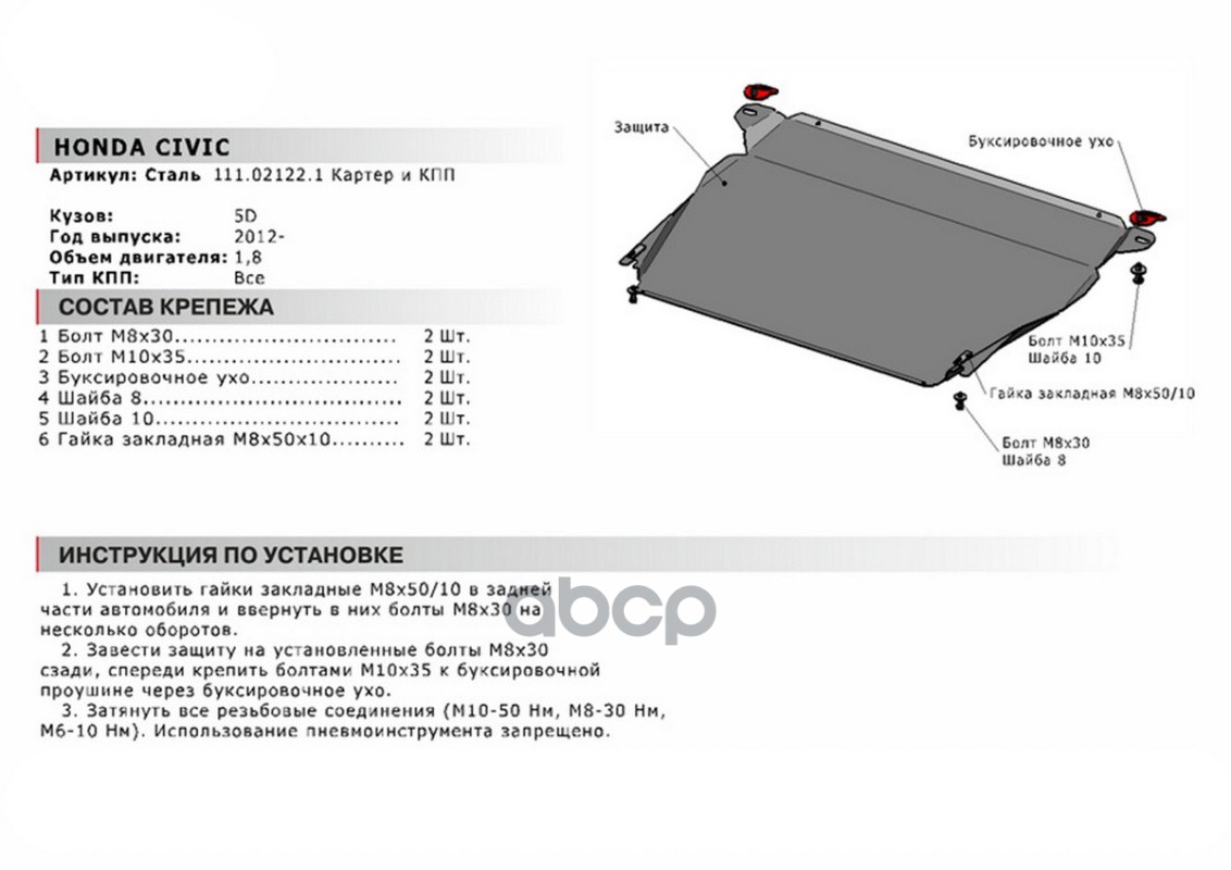 Купить запчасть 111021221 Защита картера + КПП (сталь 1,8 мм) + комплект крепежа для Honda Civic хетчбек 5 с доставкой в Эль-Монте.