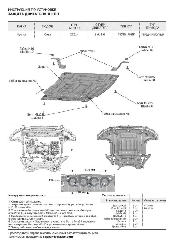 Наименование: Защита картера и КПП АвтоБроня для Hyundai Creta I
