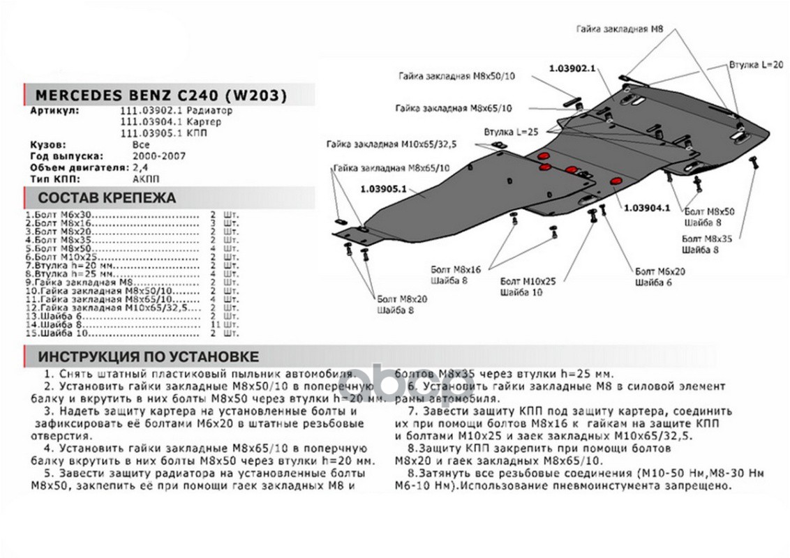 ЗАЩИТА КПП MERCEDES BENZ С240 W203 V 2,4 АКПП