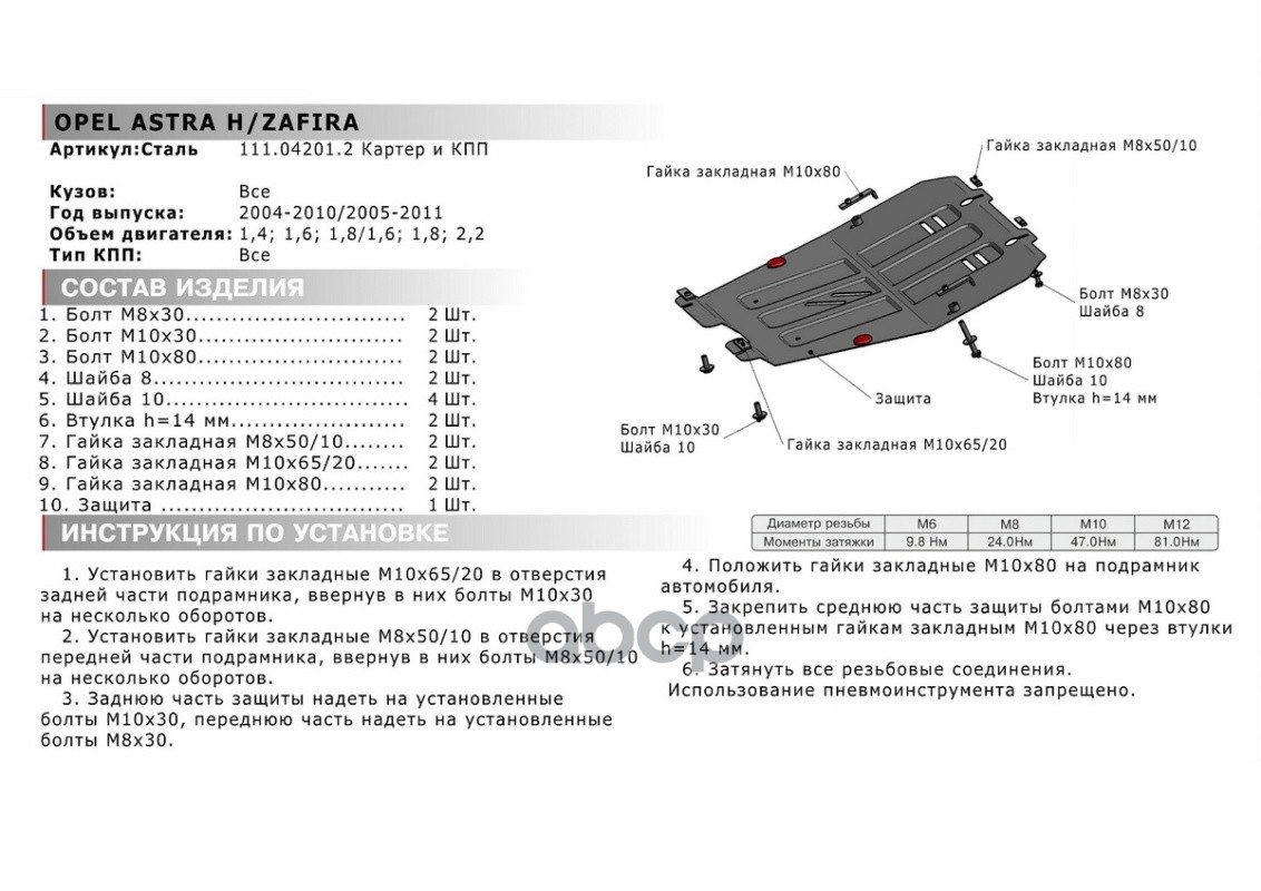 Наименование: защита картера+КПП сталь 1.5мм Opel Astra H 1.4/1.6/1.8 04-11