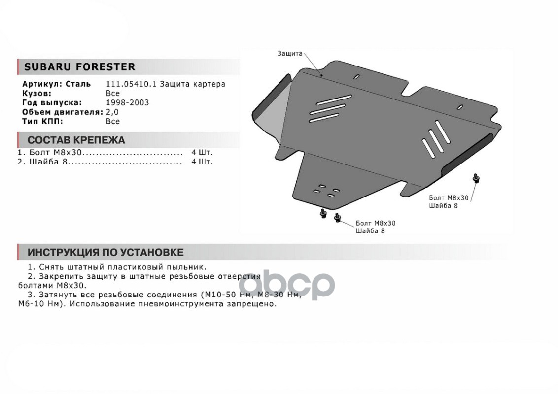 Наименование: Защита картера SUBARU Forester 2.0 98-03