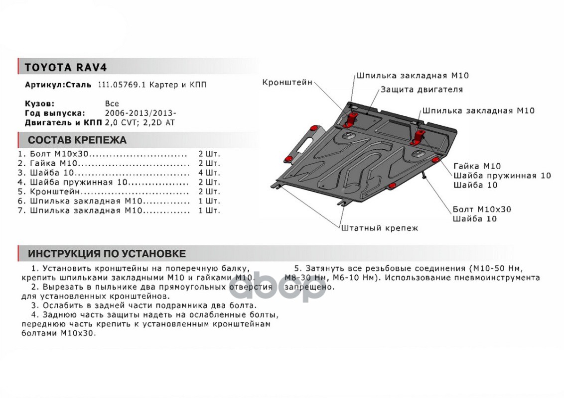 Автоброня 111057691 Бренд: Автоброня, артикул: 111057691, Toyota Rav4 CVT картер + КПП, V - 2,0MT, 2,0 CVT 2,2D AT (2013-) 2,0MT, 2,0 CVT (2010-2)+крепления.
