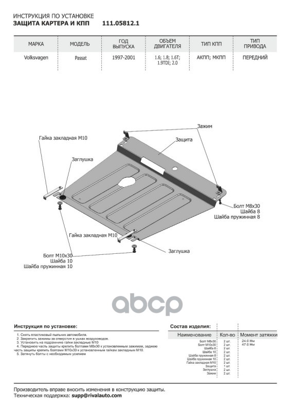 Купить запчасть 111058121 Защита картера + КПП + комплект крепежа, АвтоБРОНЯ, Сталь,Volkswagen Passat 199 с доставкой в Эль-Монте.