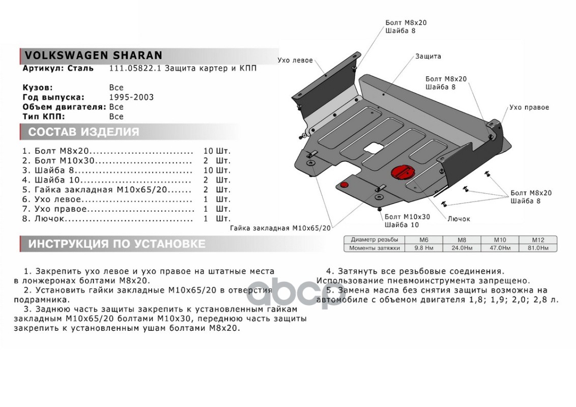 Наименование: Защита картера и КПП VW Sharan 95-03