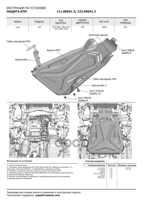 Наименование: Защита картера 2121 Нива 4х4 КПП (задн.часть) АвтоБРОНЯ 1,5мм с креплением