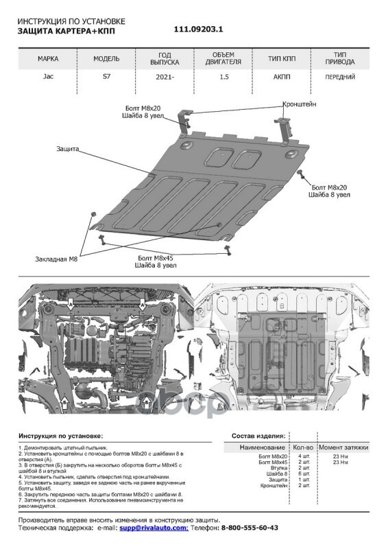 Защита картера + КПП JAC S7 20->