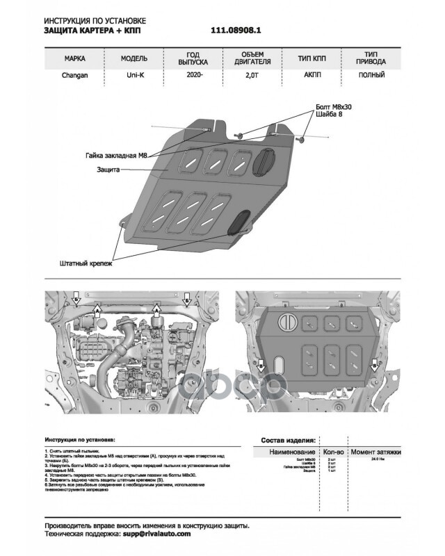 Бренд: Автоброня, артикул: K111.08908.1, Комплект защит картер + КПП + топливного бака + адсорбера сталь. |
