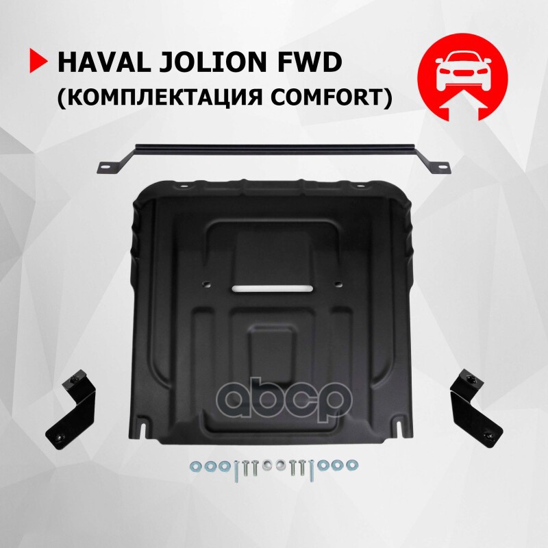 Защита картера+КПП+ комплект крепежа Автоброня, Сталь Haval Jolion 2021-, 1.5Т,МКПП, АКПП, 2WD, 4WD