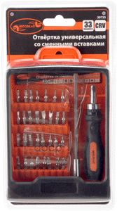 Отвертка универсальная со вставками 33 предмета (АвтоДело)