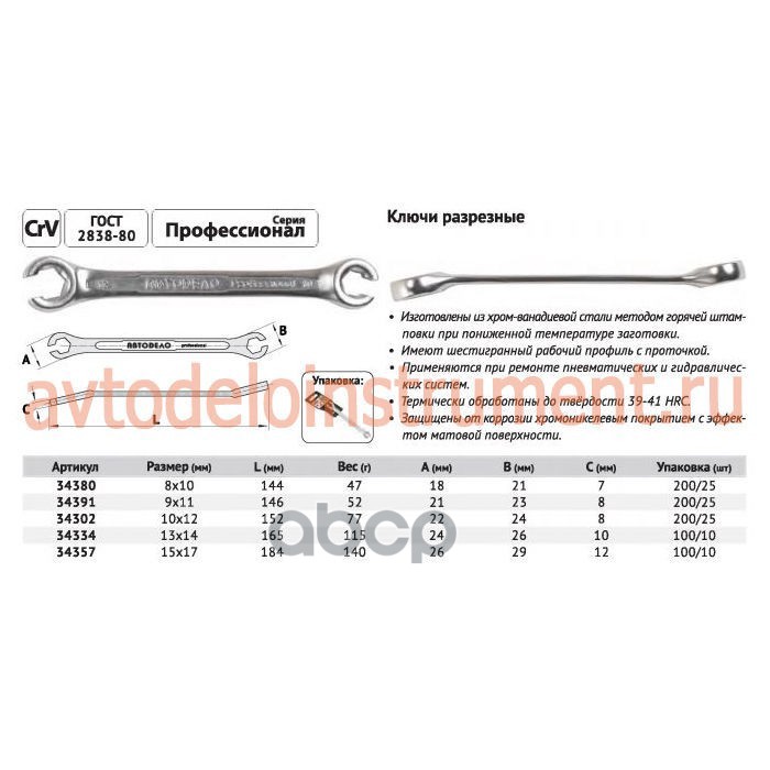 Купить запчасть 34357 Ключ прокачки тормозов 15 х 17 АвтоДело Professional 34357 с доставкой в Эль-Монте.