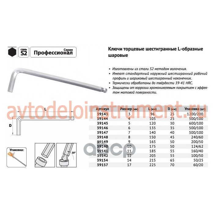 Наименование: Шестигранник 4 мм L=105 мм с шаром АвтоДело Professional 39144