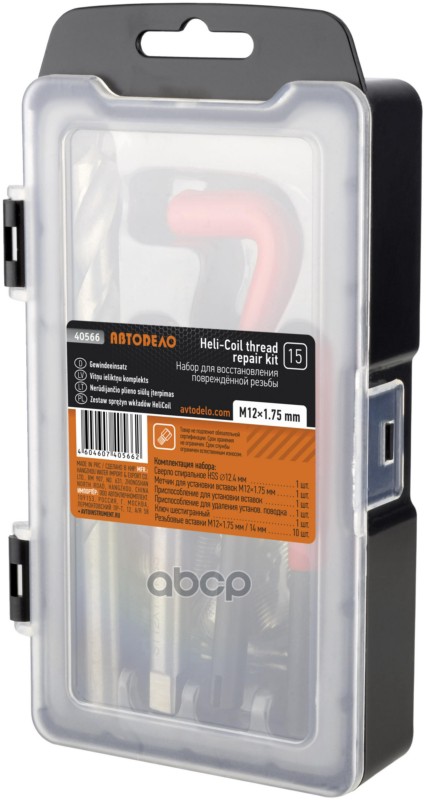 АвтоDело 40566 Бренд: АвтоDело, артикул: 40566, Набор для восстановления резьбы М12*1,75 15 пр. АвтоДело.