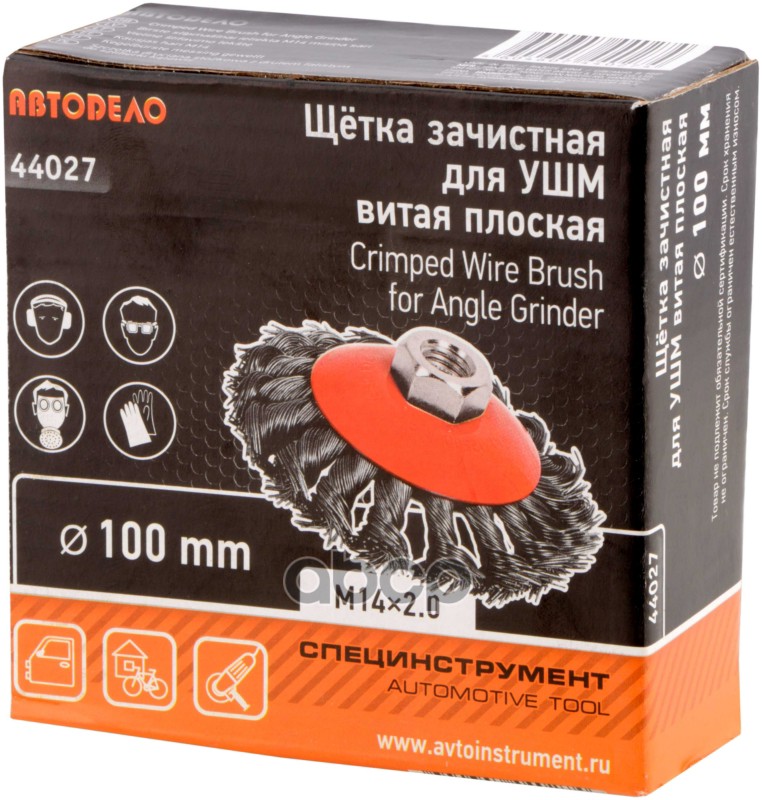 АвтоDело 44027 Бренд: АвтоDело, артикул: 44027, Щетка - крацовка для болгарки плоская витая 100 мм М14*2 АвтоДело 44027.