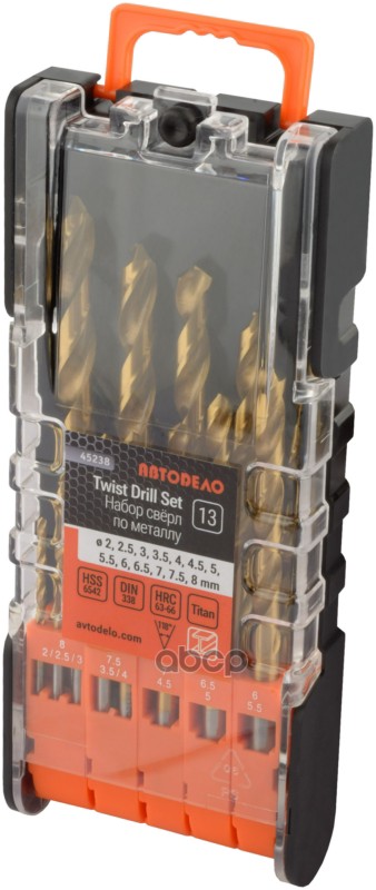 Купить запчасть 45238 набор сверл по металлу Р6М5 (HSS6542; NiTi) 13шт.(2,0-8,0мм.пласт/ф) АвтоДело (45238) с доставкой по России.