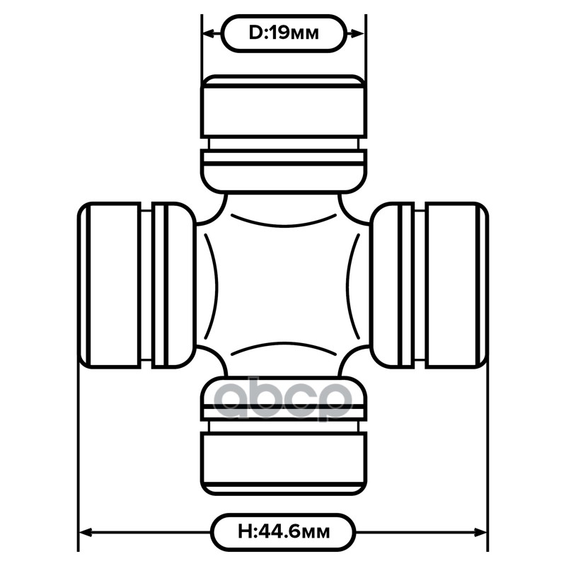 Наименование: Крестовина карданного вала для ГАЗ 3307, ГАЗель / 19х44.6мм (стопорные кольца, масленка) Агротэк