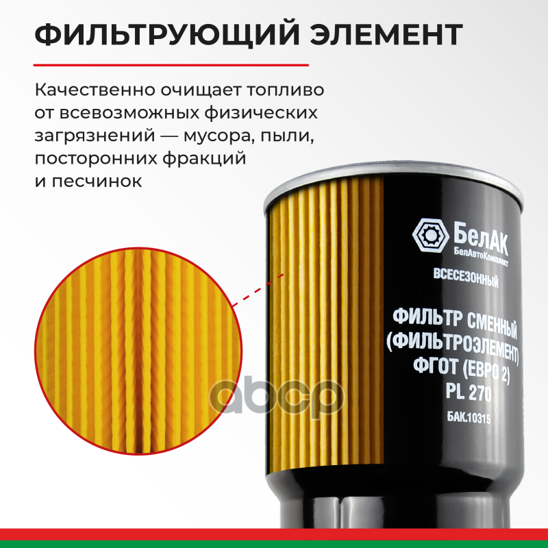 Купить запчасть БАК10314 Фильтр топливный для КамАЗ, Урал и др. / грубой очистки PreLine 270 БелАК с доставкой в Эль-Монте.