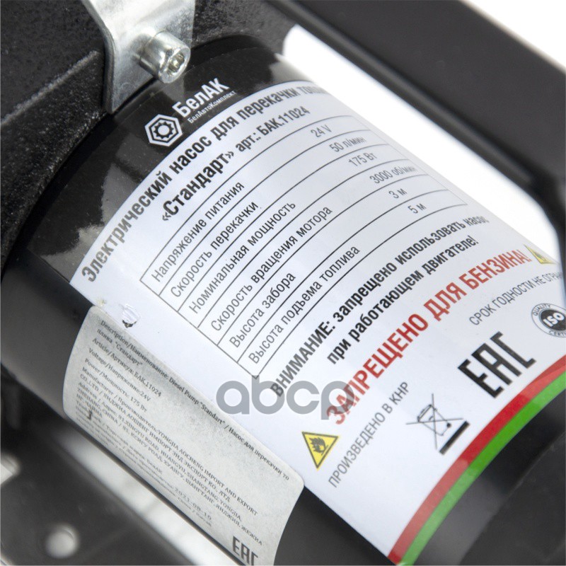 Наименование: Насос перекачки топлива "Стандарт" 24V 50л/мин. (В комплекте: фильтр грубой очистки, 3 хомута) Universal