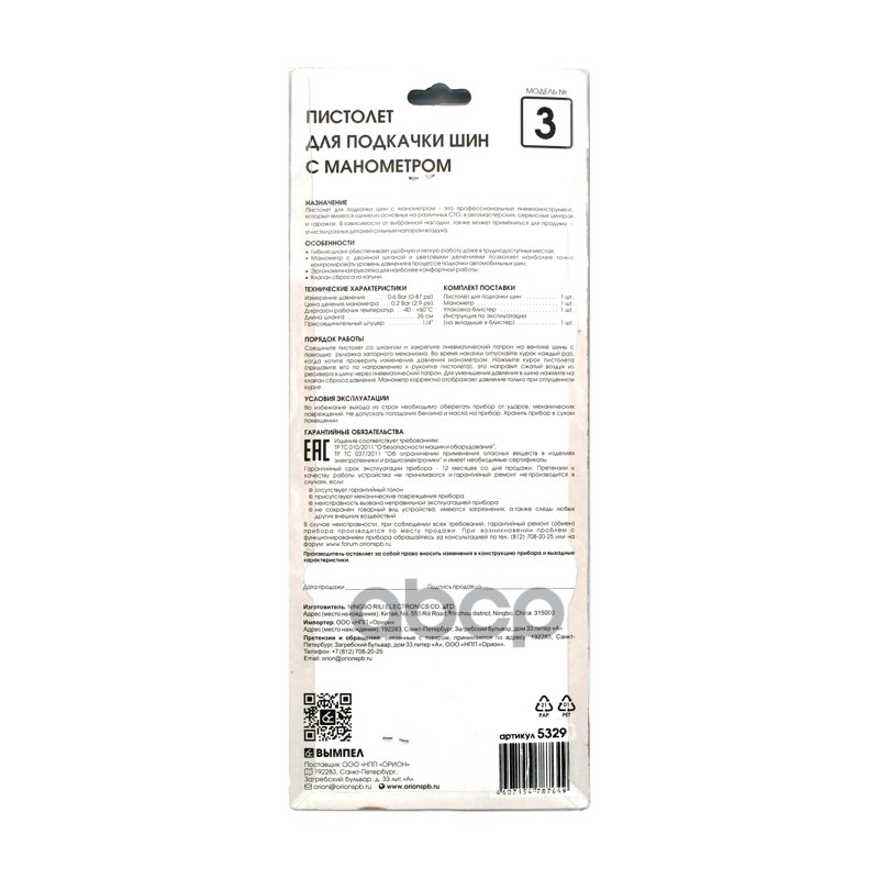 Купить запчасть 5329 Пистолет для подкачки шин с манометром 6bar №3 Вымпел 5291 с доставкой в Эль-Монте.