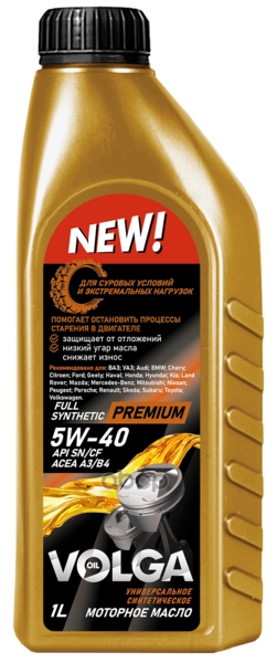 Масло моторное Волга-Ойл 5W-40 Premium A3/B4, SN/CF синтетика 1л / 5W40