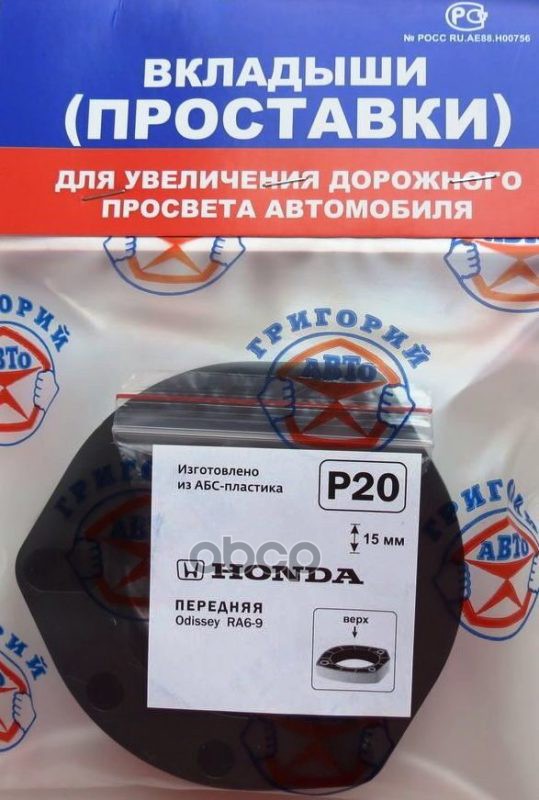 Проставки опор перед к-т 2шт, пластик 15мм, HONDA Accord CL, CM, CF, Avansier, Odyssey (P20) Модель автомобиля: HONDA: Accord CF#, CL#, CM# Avansier, Odyssey RA6-9. / Европейские аналоги: HONDA: Accord CF#, CL#, CM#