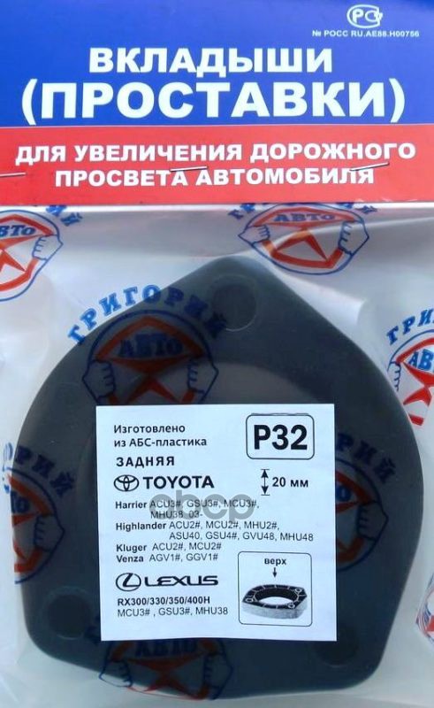 Проставки опор зад к-т 2шт, пластик 20мм, TOYOTA Harrier, Highlander, Kluger,Venza, LEXUS (P32) Модель автомобиля: TOYOTA: Harrier ACU3#, GSU3#, MCU3#, MHU38 03- Kluger ACU2#, MCU2# 08.2003-. / Европейские аналоги: LEXUS: RX300/330/350/400H 03- TOYOTA: Hi