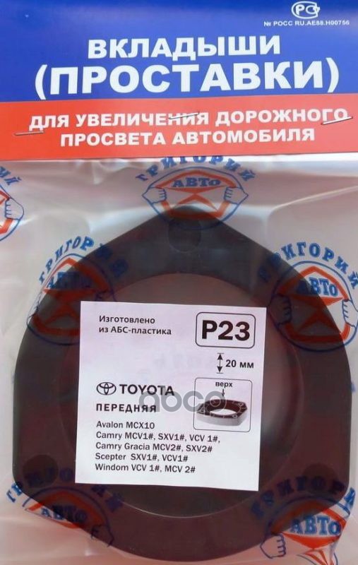 Проставки опор перед к-т 2шт, пластик 20мм, TOYOTA Camry, LEXUS, MITSUBISHI, HONDA Civic (P23) Модель автомобиля: TOYOTA: Aristo, Avalon MCX10 Camry MCV1#, SXV1#, VCV 1#, Camry Gracia MCV2#, SXV2#, Crown ##S18#, ##S20#, ##S21#, Mark X GRX12#, GRX13#, Scep