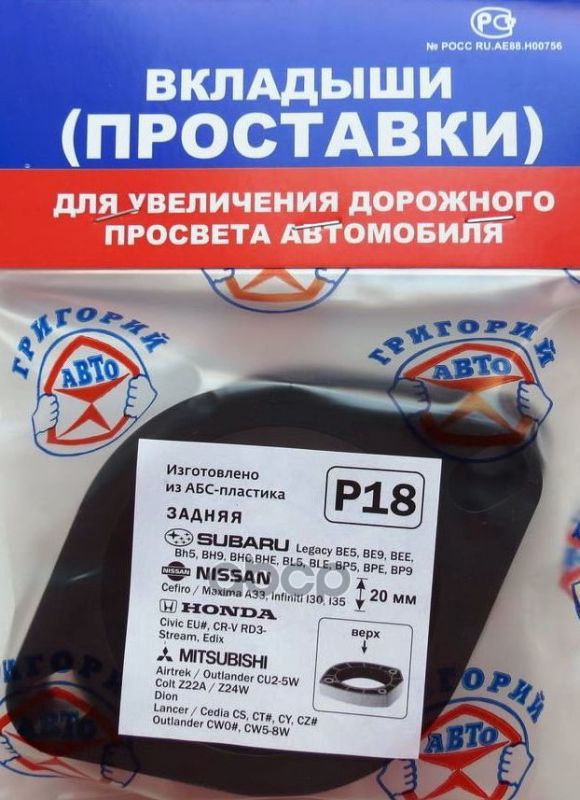 Проставки опор зад к-т 2шт, пластик 20мм, SUBARU, MITSUBISHI, NISSAN, HONDA (P18) Модель автомобиля: SUBARU: Legacy BE5, BE9, BEE, BH5, BH9, BHC, BHE, BL5, BLE, BP5, BPE, BP9, Mitsubichi: Airtrek CU2-5W Colt Z22A/Z24W, Dion, Lancer/Cedia CS, CT# HONDA: Ci
