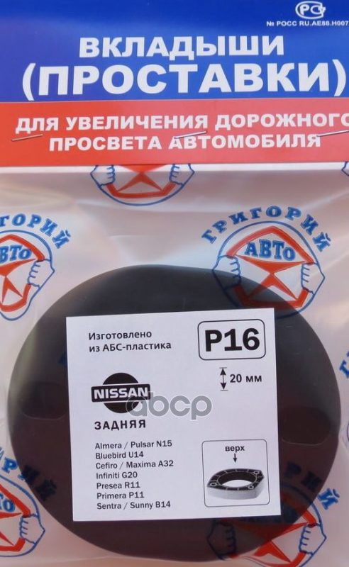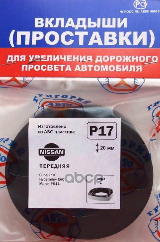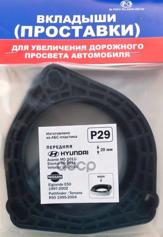 Проставки опор перед к-т 2шт, пластик 20мм, HYUNDAI Avante/Elantra 11-, NISSAN, INFINITI (P29) Модель автомобиля: NISSAN: Elgrande E50 1997-2002, Pathfinder/Terrano R50 1995-2004. / Европейские аналоги: HYUNDAI: Elantra SD 2011-, Veloster GS 2011- NISSAN:
