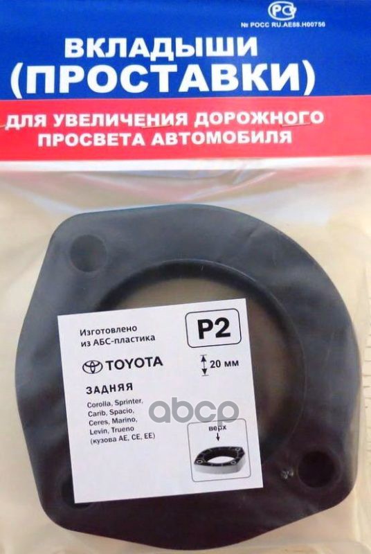 Проставки опор зад к-т 2шт, пластик 20мм TOYOTA Сorolla, Sprinter, HYUNDAI, KIA Sportage (P2) Модель автомобиля: TOYOTA: Corolla, Sprinter, Spacio, Marino, Carib, Levin (кузова AE, CE, EE). / Европейские аналоги: TOYOTA: Corolla, Sprinter, Spacio, Marino,