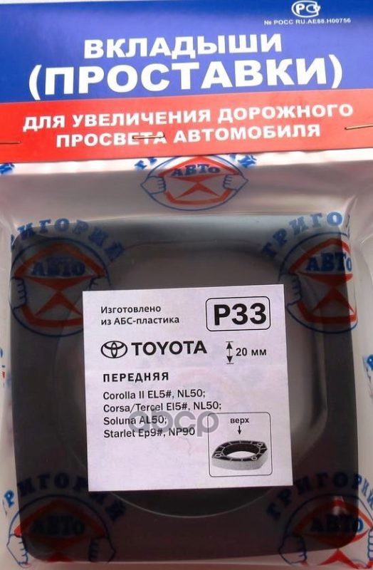 Проставки опор перед к-т 2шт, пластик 20мм, TOYOTA Corolla, Corsa, Tercel, Starlet, Soluna (P33) Модель автомобиля: TOYOTA: Corolla II EL5#, NL50 Corsa/Tercel EL5#, NL50 Raum EXZ1#, Starlet EP9#, NP90. / Европейские аналоги: TOYOTA: Tercel EL5#, NL50 Solu