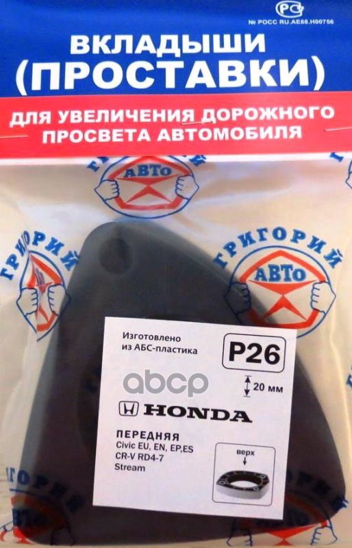 Проставки опор перед к-т 2шт, пластик 20мм, HONDA Civic, CR-V, Element, Strea, HYUNDAI (P26) Модель автомобиля: HONDA: Civic 2001-2006 г., CR-V RD3-8, Edix, Stream, Element HYUNDAI: Avante/Elantra BK, CF, HD, UN 2006-2011, I30 FD 2007-2012, Azera HG 2011-