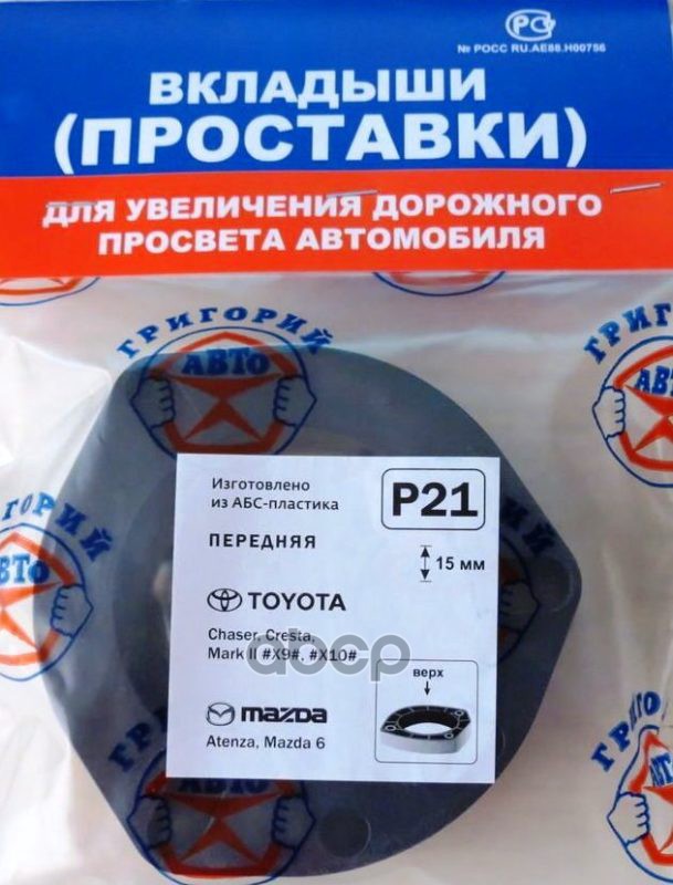 Проставки опор перед к-т 2шт, пластик 15мм, TOYOTA Chaser, Cresta, Mark II, MAZDA 6, Atenza (P21) Модель автомобиля: TOYOTA: Chaser, Cresta, Mark II #X9#, #X10#, Mazda: Atenza GG -07. / Европейские аналоги: MAZDA 6 GG -07