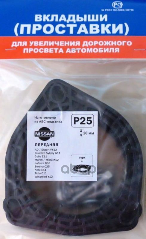 Проставки опор перед к-т 2шт, пластик 20мм, NISSAN AD, Bluebird,Cube, Qashqai, March, Tiida (P25) Модель автомобиля: NISSAN: AD/Expert VY12, Bluebird Sylphy G11, Cube Z11, March K12, Lafesta B30, Serena C25, Note E11 Tiida C11, Wingroad Y12, Juke. / Европ