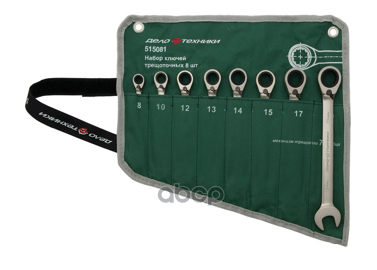 набор ключей комбинированных трещ. шарнирных 8шт. (8, 10, 12, 13, 14, 15, 17, 19) в сумке