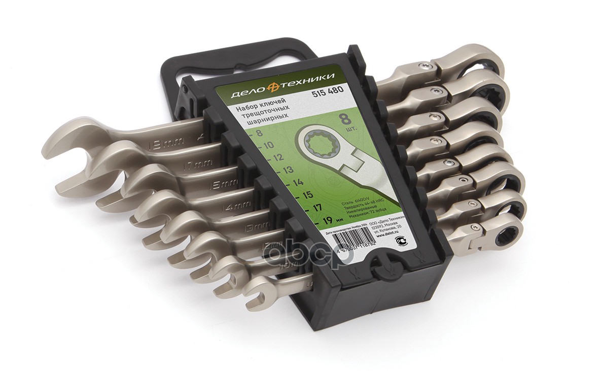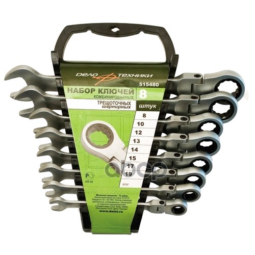набор ключей комбинированных трещ. шарнирных 8шт. (8,10,12,13,14,15,17,19) пласт. холдер