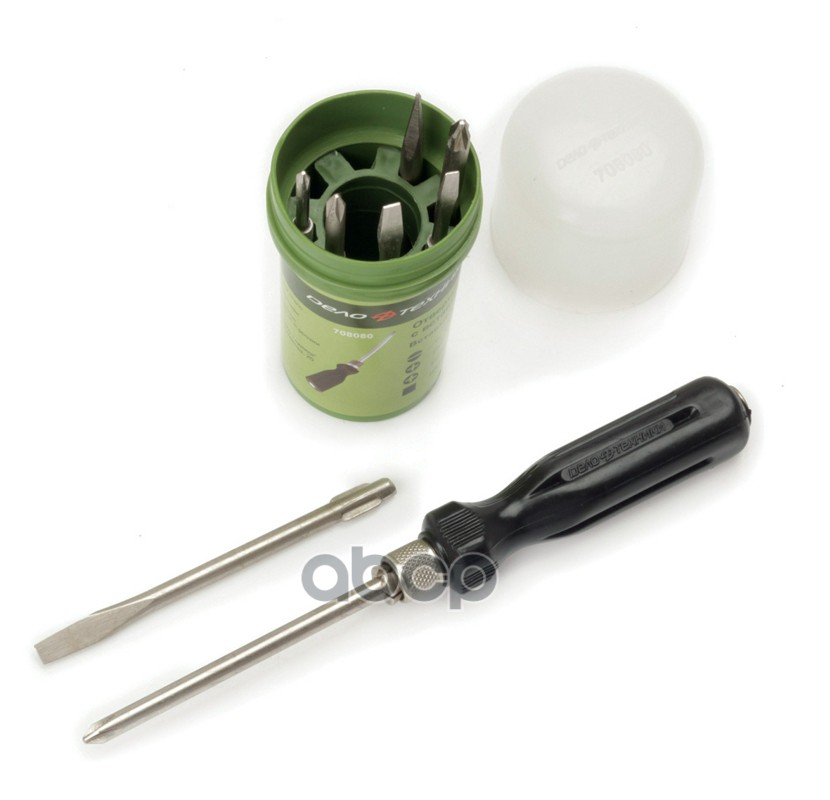 Отвертка цанговая с вставками 8шт 110мм шлиц 6,5,3мм РН0, РН1,РН2, PZ2 шило "ДТ"70/5