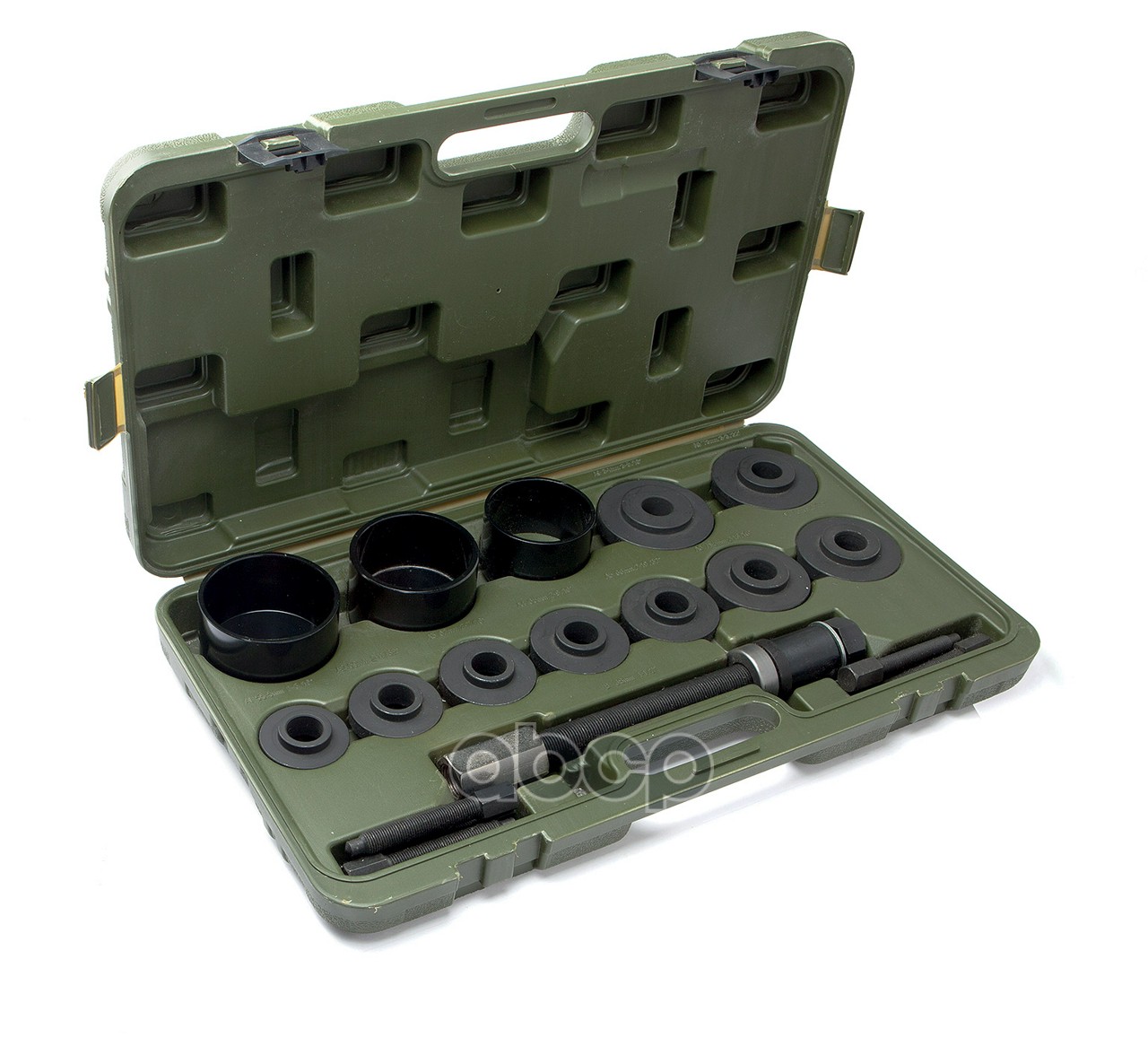 Набор инструмента для запресовки /выпресовки сайлентблоков 44-80 мм, 27 предметов Рабочий диаметр: 44—80 ммСостав набора: Оправки (внутренний/наружный диаметр, мм): 34/4436/4638/4840/5042/5244/5446/5648/5850/6052/62 54/6456/6658/6860/7062/7264/7466/