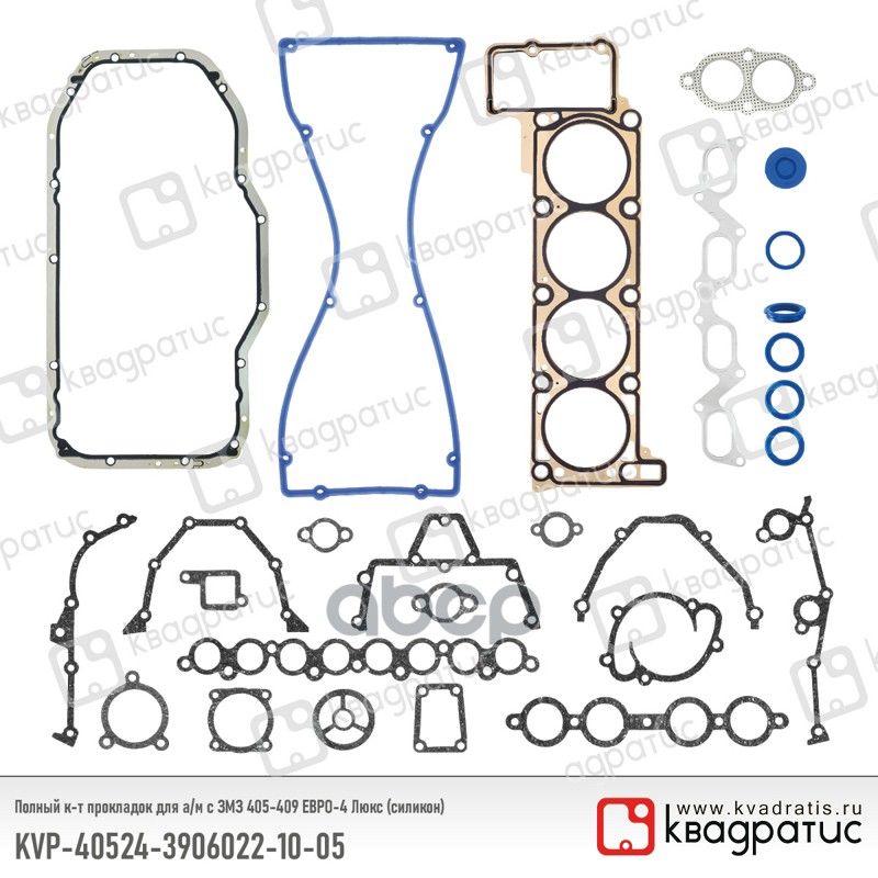 Прокладки двс (с ГБЦ) 405, 409 Евро 4 Люкс силикон Квадратис 40524-3906022-10-05 4052439060221005