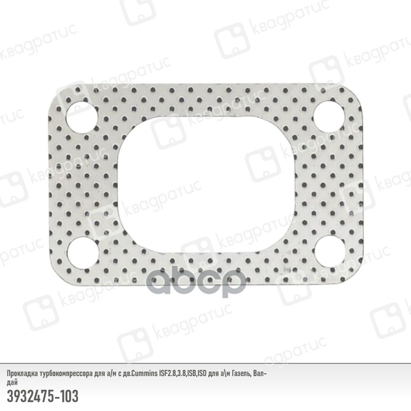 Прокладка турбокомпрессора Г-3302, Г-3310 двс Cummins ISF2,8/3,8 Квадратис 3932475 3932475